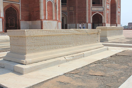 胡馬庸陵寢的周遭還許多小型的陵寢,是他的其它家屬們,但比起胡馬庸陵這些小陵寢幾乎沒有人在參觀,安靜默默的座落在花園的各個角落。逛完回到大門附近,發現主道路旁有個破碎牆壁,其中有道門,穿越過後來到一個正六角形的場域,中間有個Isa Khan的墳墓。為什麼這個陵寢會獨立在這裡呢?其建築風格也有點異於園區內的其他陵寢,有興趣的人就自己去Google一番吧。