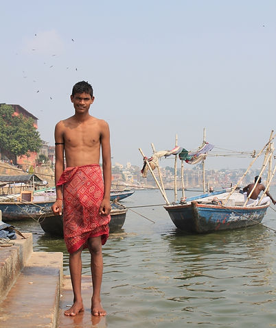 散步在河岸邊,總是沒辦法提下快門,各種不同河壇建築層出不窮、賞心悅目。就在某一處停下來拍景點時,正在恆河水中的他忽然叫了我一聲,告訴我可以再往下一點角度比較好。上岸之後他試著想和我交談但英文不輪轉,最後要求我幫他拍了這一張照。雖然才到印度沒幾天,就已經知道絕大部分要求拍照都是要收錢的。但這個大男孩給我的感覺就是很真誠的,希望能夠被拍一張照片留做紀念,就只是這樣子而已。