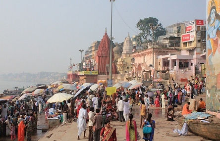沿著河岸邊走,有許多人在河邊 晨泳、沐浴或者洗衣服,雖然河面上看起絕對算不上乾淨,但每個人都極其自然的作著自己一如往常的事,這已經是他們根深蒂固的日常生活,千年來與恆河共生共處的相處方式。越往人多的地方走,河面上漂流的東西也越多,幾度驚見疑似浮屍的物體,細看之後才發現其實是這幾天節慶祭祀用的草人,用完之後就那樣直接丟到河裡去,又或者這也是儀式的一部分我並不清楚。